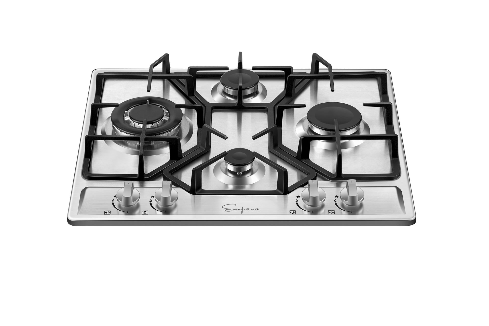 - The Empava 24 inch Built-in Gas Cooktops are designed for versatility and efficient cooking, supporting both LPG and Natural Gas energy sources to suit your kitchen setup. Featuring up to four burners of varying sizes, these cooktops deliver precise heat control with power outputs of 12,000 BTU, 10,200 BTU, 6,000 BTU, and 3,400 BTU. This range of burner sizes allows you to handle multiple cooking tasks simultaneously, from high-heat searing to gentle simmering. Built to fit seamlessly into your kitchen countertop, the Empava cooktop combines performance with convenience for a professional cooking experience.