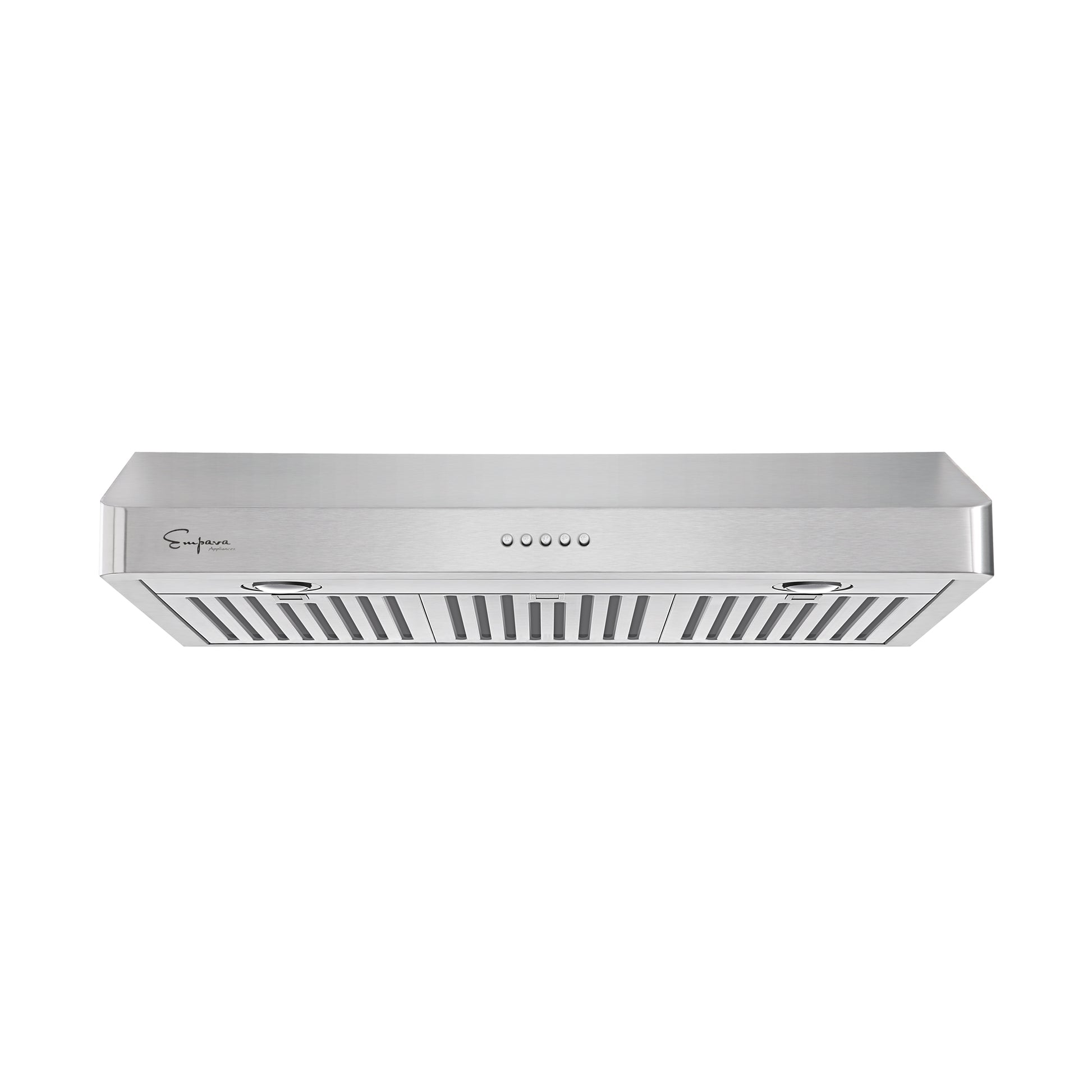 - The Empava 30 Inch 500 CFM Ducted Under Cabinet Range Hood offers powerful ventilation with a 500 CFM air volume, efficiently removing smoke, odors, and airborne grease from your kitchen. It features three adjustable airflow levels so you can customize ventilation to suit your cooking needs, whether simmering or frying. Designed to fit neatly under your kitchen cabinet, this range hood saves valuable space while maintaining a sleek, modern look. Upgrade your cooking environment with improved air quality and a quieter, more effective exhaust system that keeps your kitchen fresh and comfortable.
