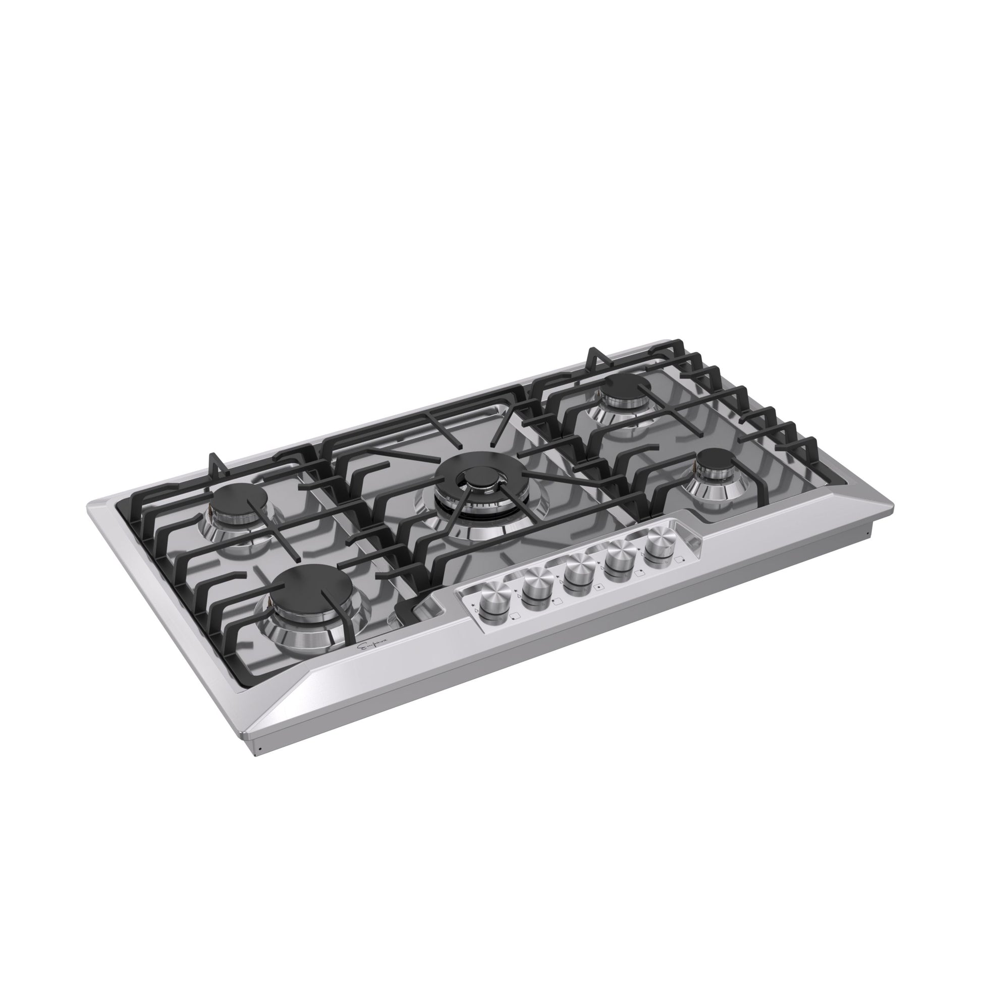 - The Empava 36 inch Built-in Gas Cooktop is designed for versatility and performance, compatible with both LPG and natural gas energy sources to suit various kitchen setups. This cooktop features up to five burners of varying sizes, offering precise control over your cooking with power outputs ranging from 3800 BTU to 13000 BTU. Whether you need intense heat for boiling or a low simmer for delicate sauces, this model delivers efficient and reliable performance. Its built-in design ensures a seamless installation, optimizing your kitchen workspace while providing professional-grade cooking capabilities ideal for any culinary enthusiast.