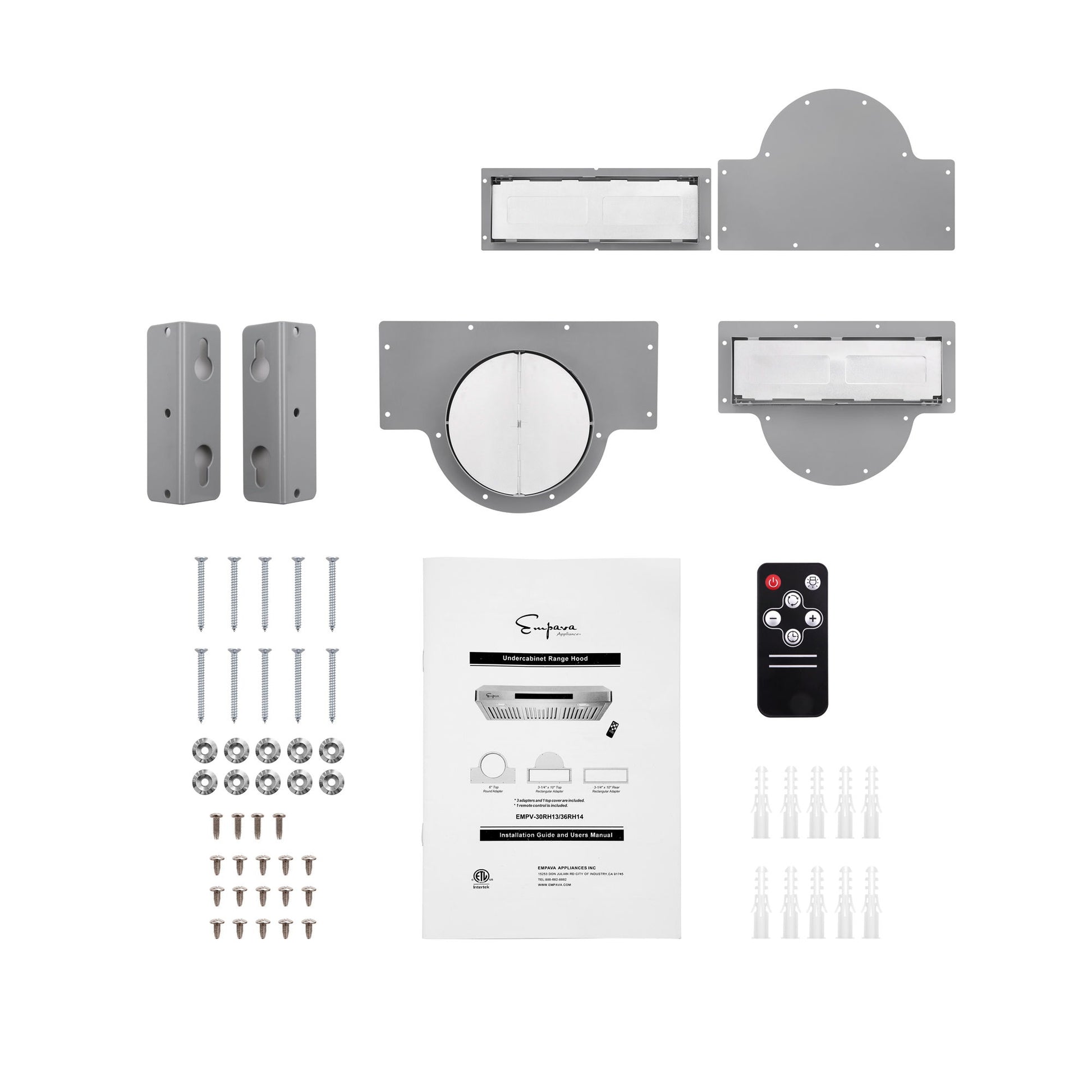 - Experience powerful and convenient ventilation with the Empava 36 Inch 500 CFM Ducted Under Cabinet Range Hood. Its 500 CFM airflow efficiently removes smoke, odors, and grease from your kitchen, ensuring a cleaner, fresher environment. Control the hood effortlessly from anywhere using the remote, giving you flexibility and ease of use while cooking. The automatic shut-off timer can be set between 1 to 15 minutes, enhancing safety and energy efficiency by turning the hood off when not needed. Designed to seamlessly fit under your cabinet, it combines high performance with sleek, space-saving style for a better cooking experience.
